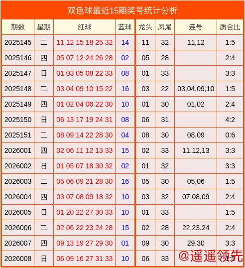 蓝球分析:最近15期蓝球号码中,质合比为3:12,偶数出现的概率较高。本期预测蓝球号码为04。