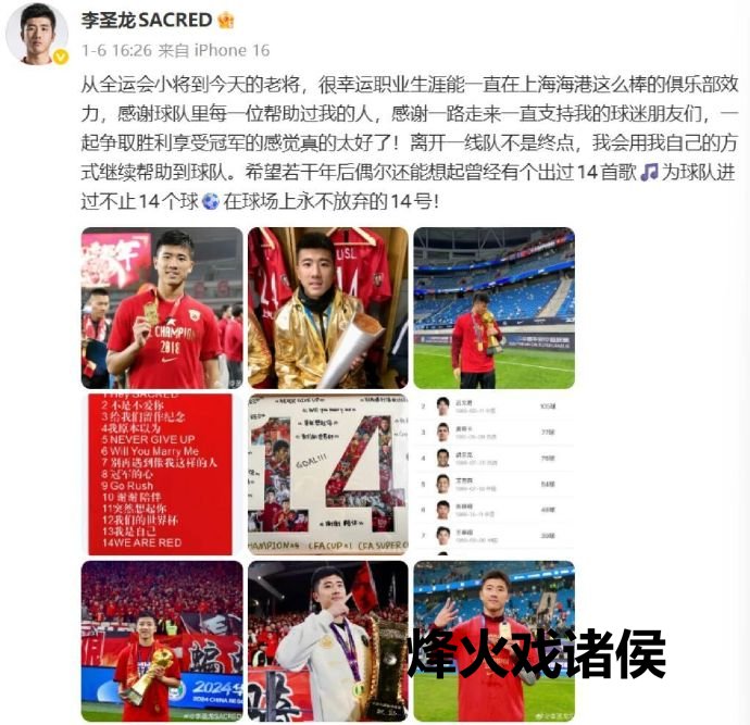 团结天,32 岁的先锋李圣龙也通过微博发文书别:“从全运会小将到今天的宿将,很走时干事生计能一直在上海海港这样棒的俱乐部效能,感谢球队里每一位匡助过我的东谈主,感谢一齐走来一直复古我的球迷一又友们,沿途争取告捷、享受冠军的嗅觉真实太好了!离开一线队不是至极,我会用我方的神情不竭匡助球队。但愿些许年后偶尔还能念念起仍是有个出过 14 首歌、为球队进过不啻 14 个球、在球场上永不废弃的 14 号!”1 月 8 日,海港俱乐部宣布:李圣龙将看成海港 B 队的一员,在新赛季随队建造中乙联赛。